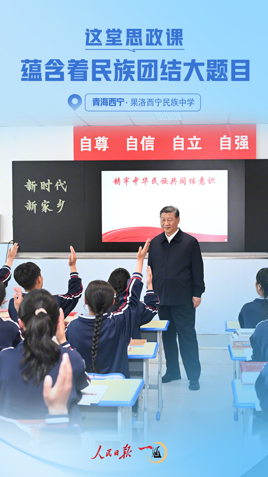 西寧城北,元朔山麓,藍天白云掩映下的果洛西寧民族中學綠意蔥蘢。6月18日,正在青海省西寧市考察的習近平總書記來到這里并觀摩了一堂思政課??倳泴λ颊n歷來很重視——這是落實立德樹人根本任務的關鍵課程,是培養(yǎng)社會主義建設者和接班人的重要保障。