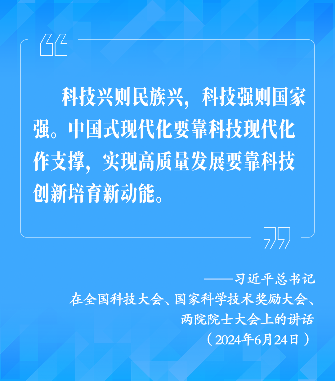 6月24日,全國科技大會、國家科學技術獎勵大會、兩院院士大會在北京召開,習近平總書記為國家最高科學技術獎獲得者等頒獎并發(fā)表重要講話??倳洀娬{,科技興則民族興,科技強則國家強。中國式現代化要靠科技現代化作支撐,實現高質量發(fā)展要靠科技創(chuàng)新培育新動能。