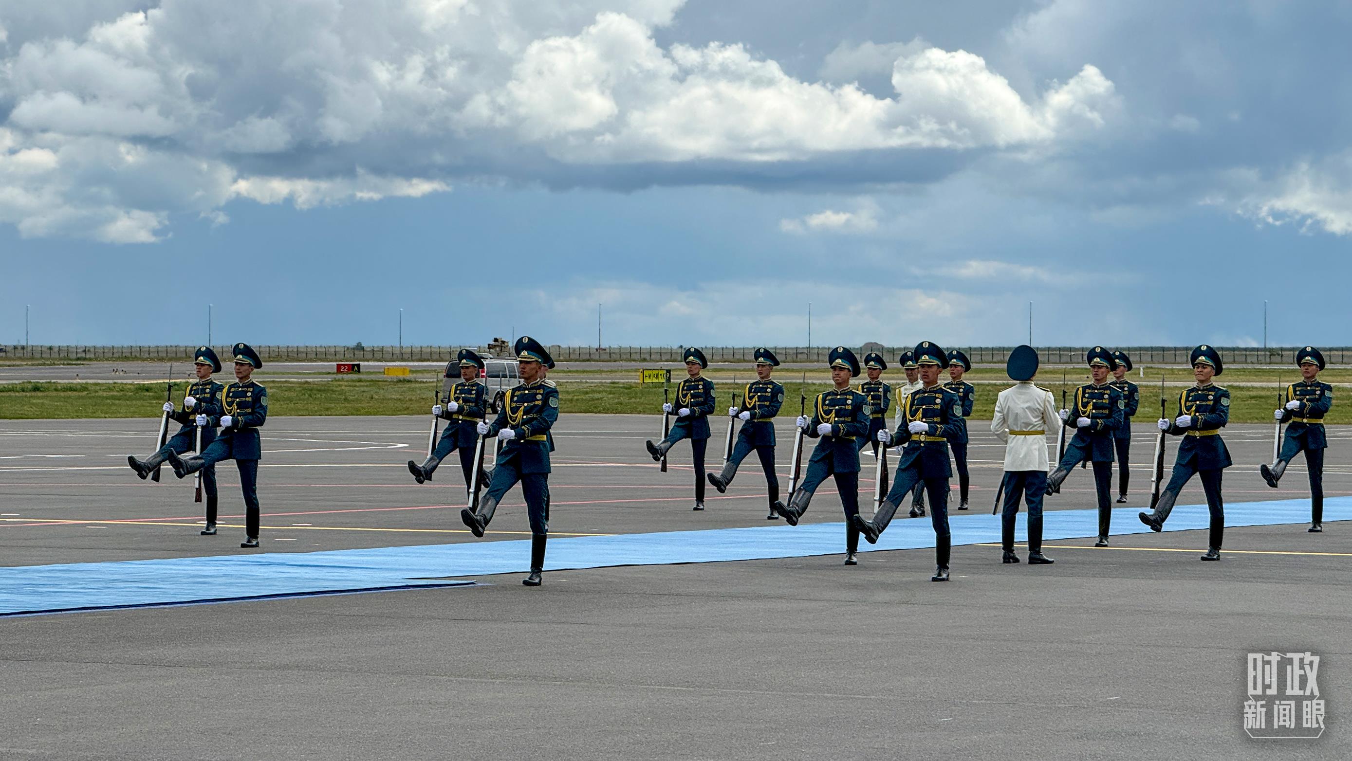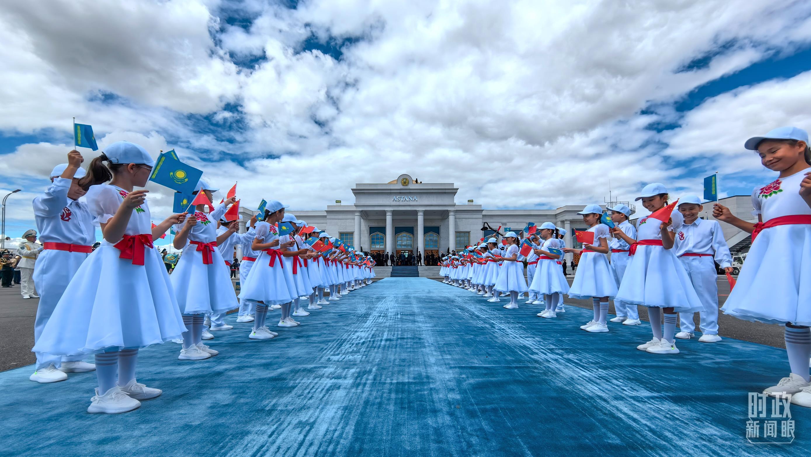 托卡耶夫總統(tǒng)在機(jī)場為習(xí)主席舉行了盛大隆重的迎賓儀式。100余名儀仗兵英姿挺拔,軍樂團(tuán)奏響迎賓曲和迎賓號角。近百名哈薩克斯坦兒童揮舞中哈兩國國旗,歡呼“您好”,熱烈歡迎習(xí)主席到訪。
