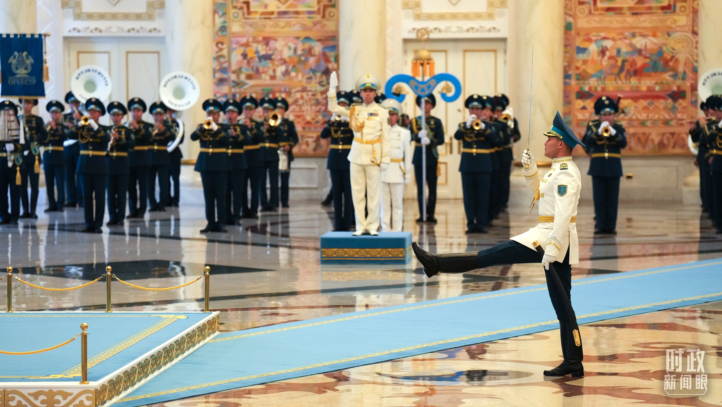 哈薩克斯坦總統(tǒng)府禮兵。(總臺央視記者程鋮、蔣碩拍攝)