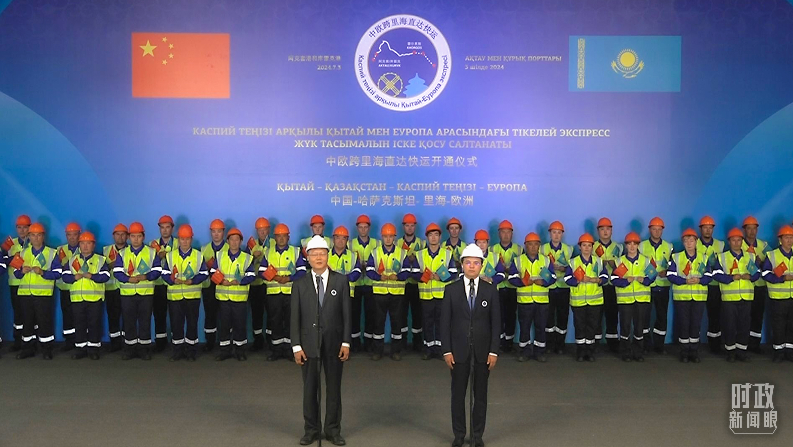 中歐跨里海直達快運開通儀式現(xiàn)場。