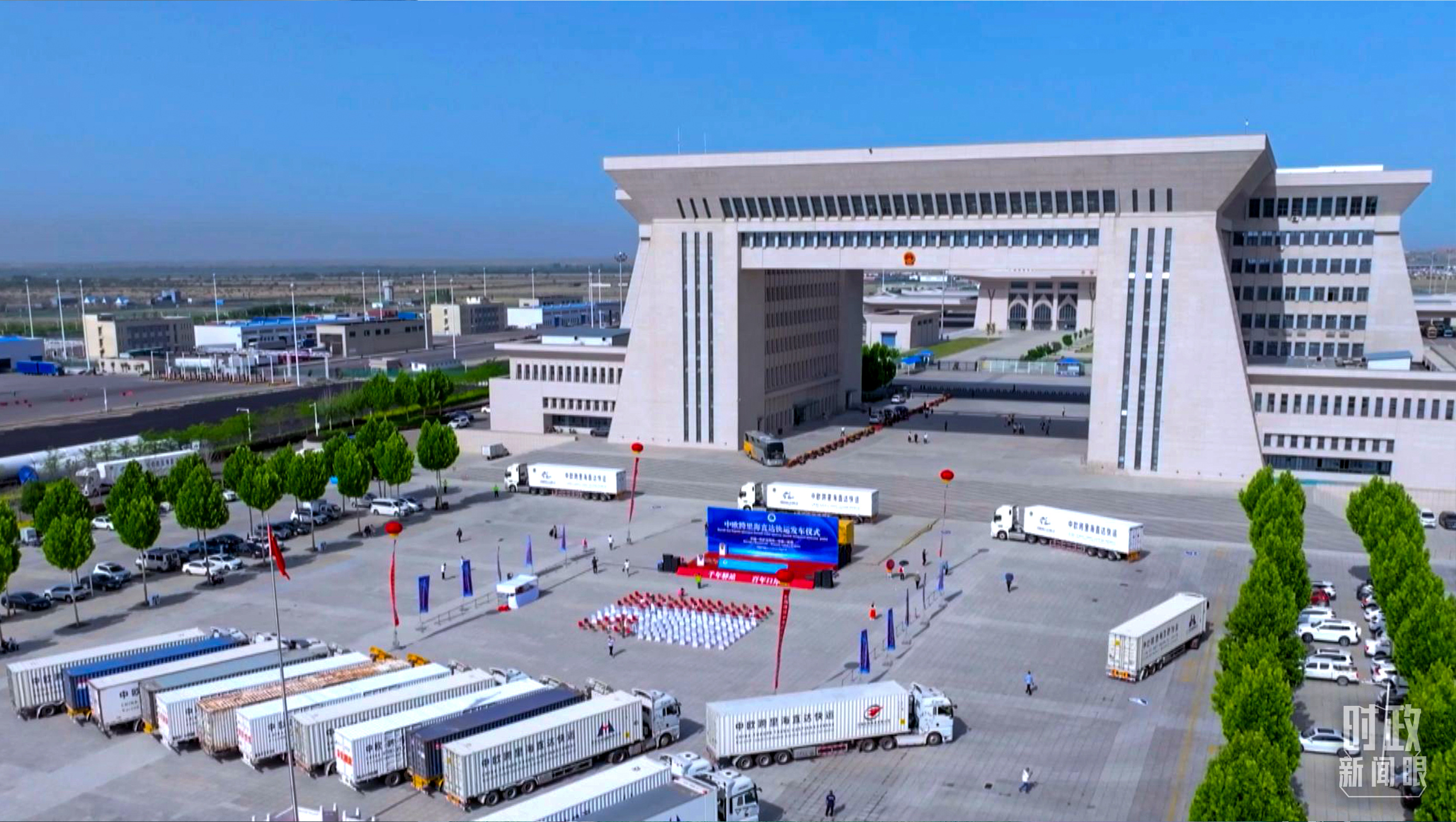 一場是兩國元首以視頻方式出席中歐跨里海直達快運開通儀式。