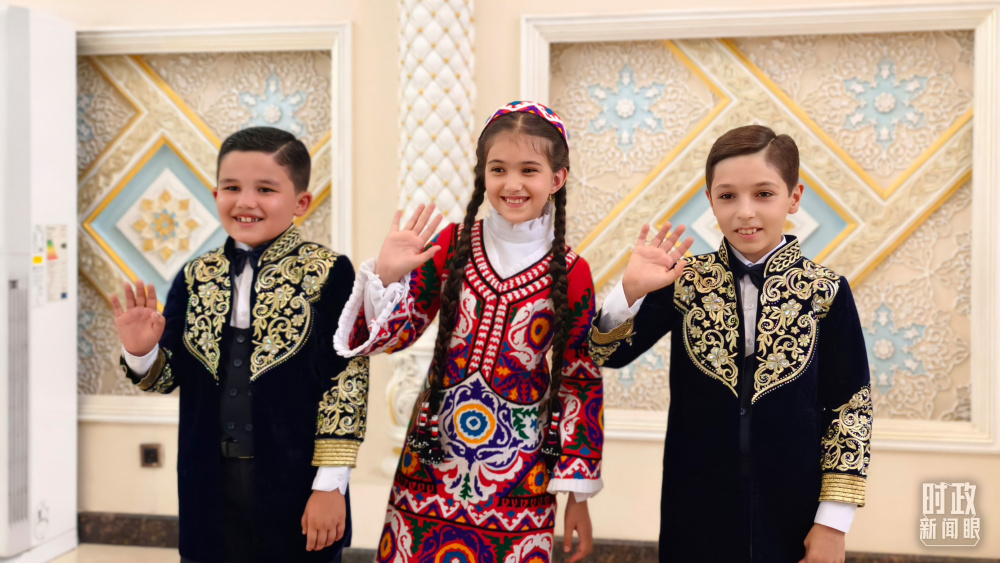 1500多名身著民族盛裝的塔吉克斯坦青年,表演富有濃郁特色的中塔歌舞,揮舞中塔兩國國旗,表達(dá)對中國領(lǐng)導(dǎo)人的熱烈歡迎。