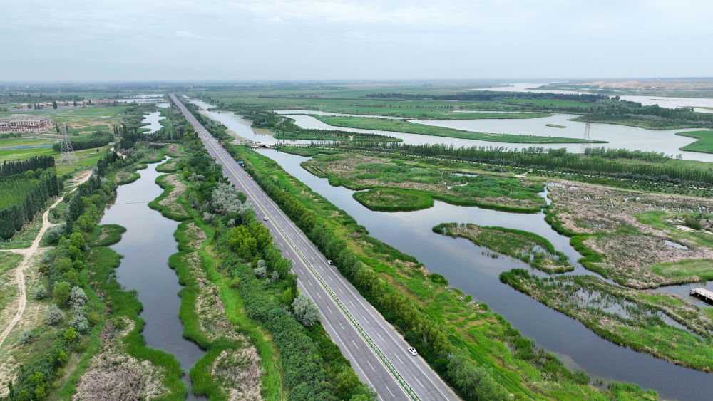 這是2024年6月13日拍攝的黃河寧夏段濱河大道(無人機照片)。近年來,寧夏努力建設(shè)黃河流域生態(tài)保護(hù)和高質(zhì)量發(fā)展先行區(qū),全力打好黃河保護(hù)持久戰(zhàn)。新華社記者 王鵬 攝