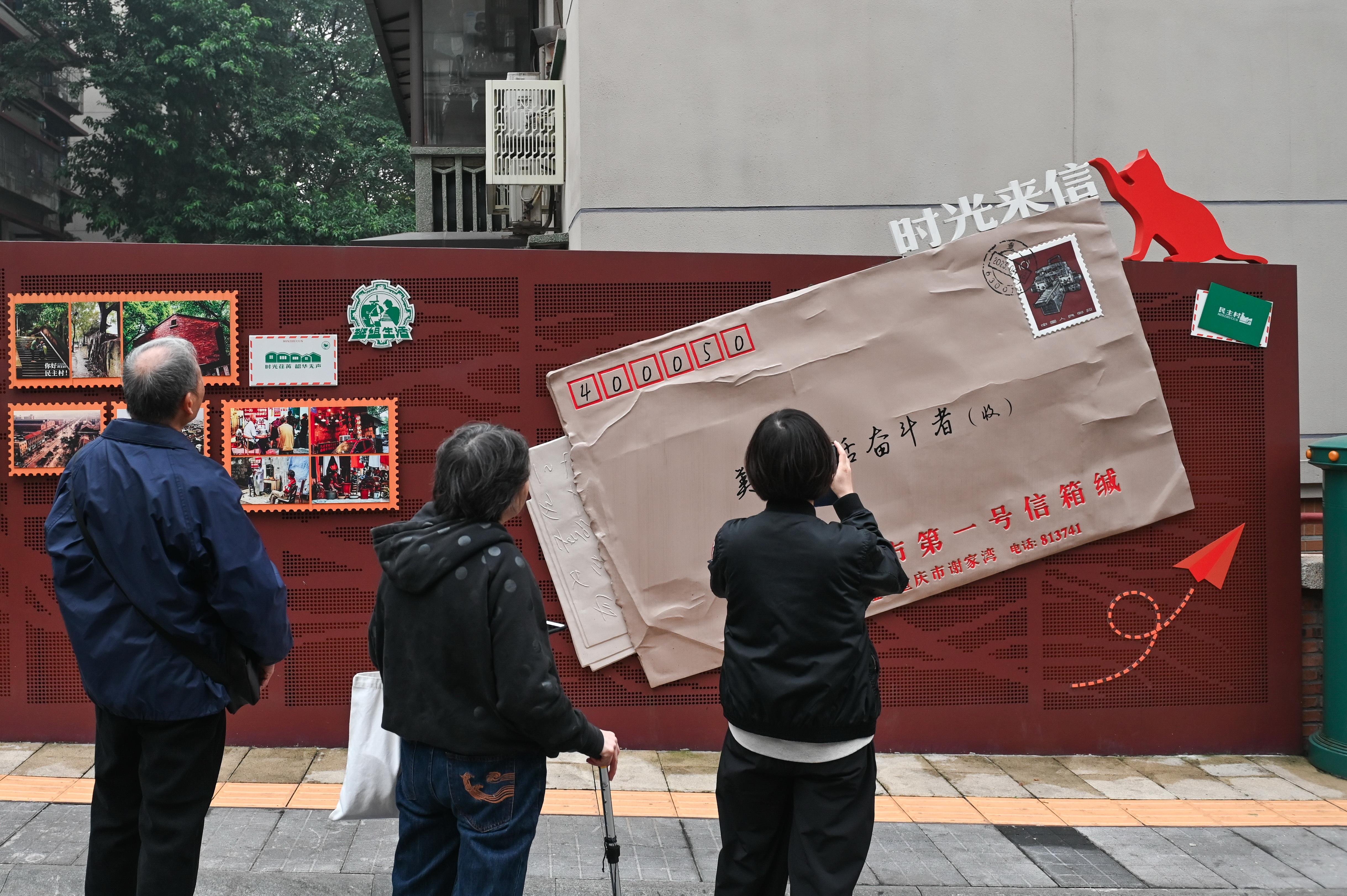 在重慶市九龍坡區(qū)民主村社區(qū),一封寄給“美好生活?yuàn)^斗者”的巨大信封,幾乎鋪滿一面紅色的墻。市井煙火氣與新潮現(xiàn)代的時(shí)尚范兒融合交織,讓這里成為新晉網(wǎng)紅打卡地。
