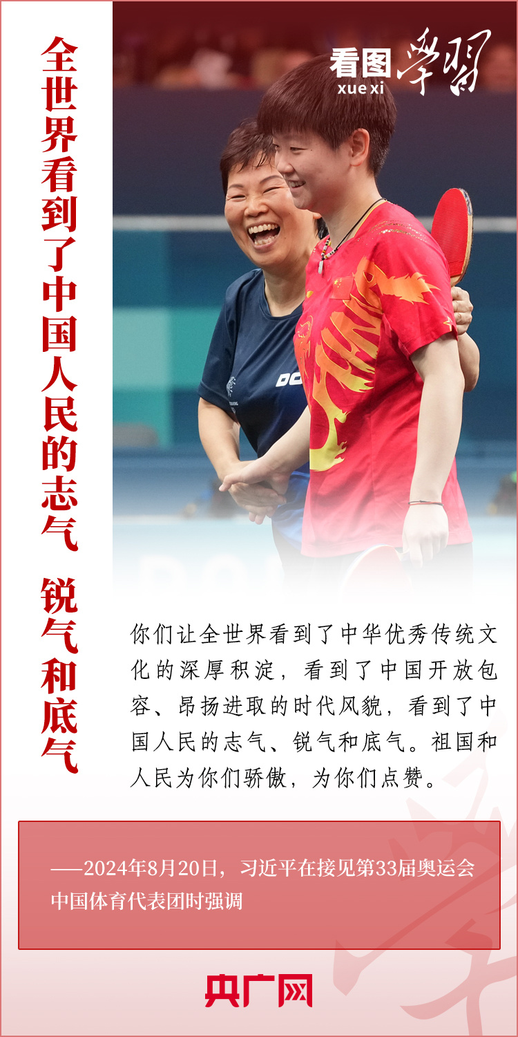 “祖國和人民為你們驕傲,為你們點(diǎn)贊。”8月20日,習(xí)近平總書記在人民大會堂接見第33屆奧運(yùn)會中國體育代表團(tuán)并發(fā)表重要講話??倳浉叨瓤隙ㄖ袊w育代表團(tuán)取得的優(yōu)異成績,贊揚(yáng)他們充分彰顯了新時(shí)代中國力量、生動詮釋了新時(shí)代中國精神、充分展現(xiàn)了新時(shí)代中國形象,勉勵大家戒驕戒躁、再接再厲,為建設(shè)體育強(qiáng)國再立新功。一起來學(xué)習(xí)!