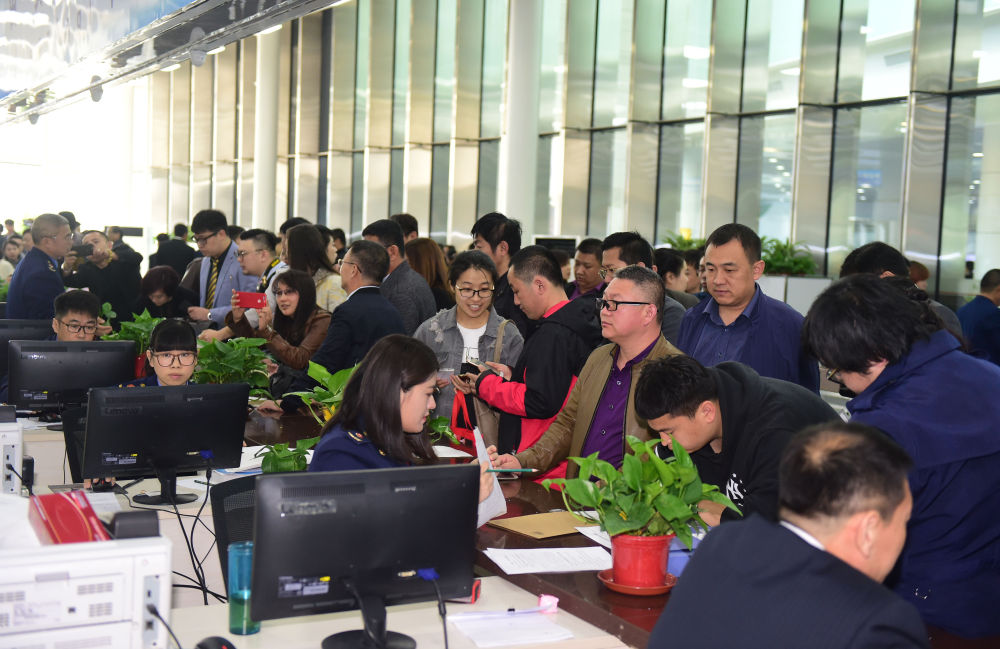 2017年4月10日,中國(guó)(遼寧)自由貿(mào)易試驗(yàn)區(qū)沈陽(yáng)片區(qū)揭牌當(dāng)日,眾多企業(yè)咨詢注冊(cè)。新華社記者楊青 攝