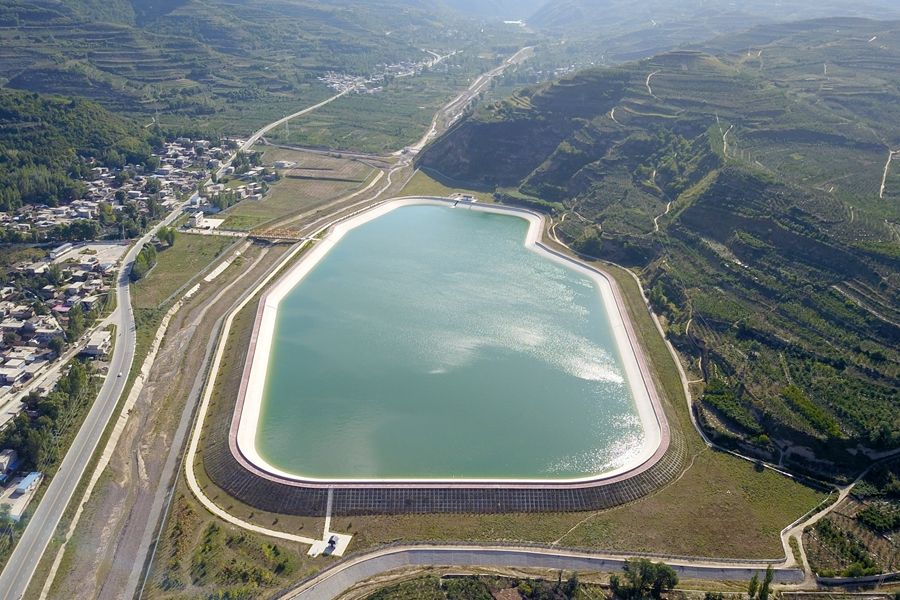 這是在天水市拍攝的已投用的天水城區(qū)引洮供水工程楊家灣調(diào)蓄水池(無人機照片)。新華社記者 范培珅 攝
