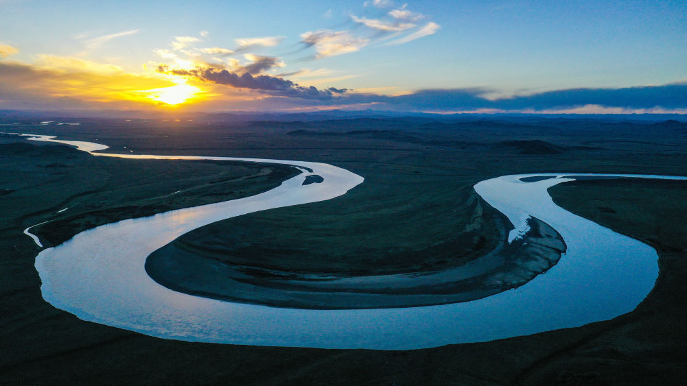 2024年7月31日在青海省果洛藏族自治州達(dá)日縣境內(nèi)拍攝的黃河(無人機全景照片)。