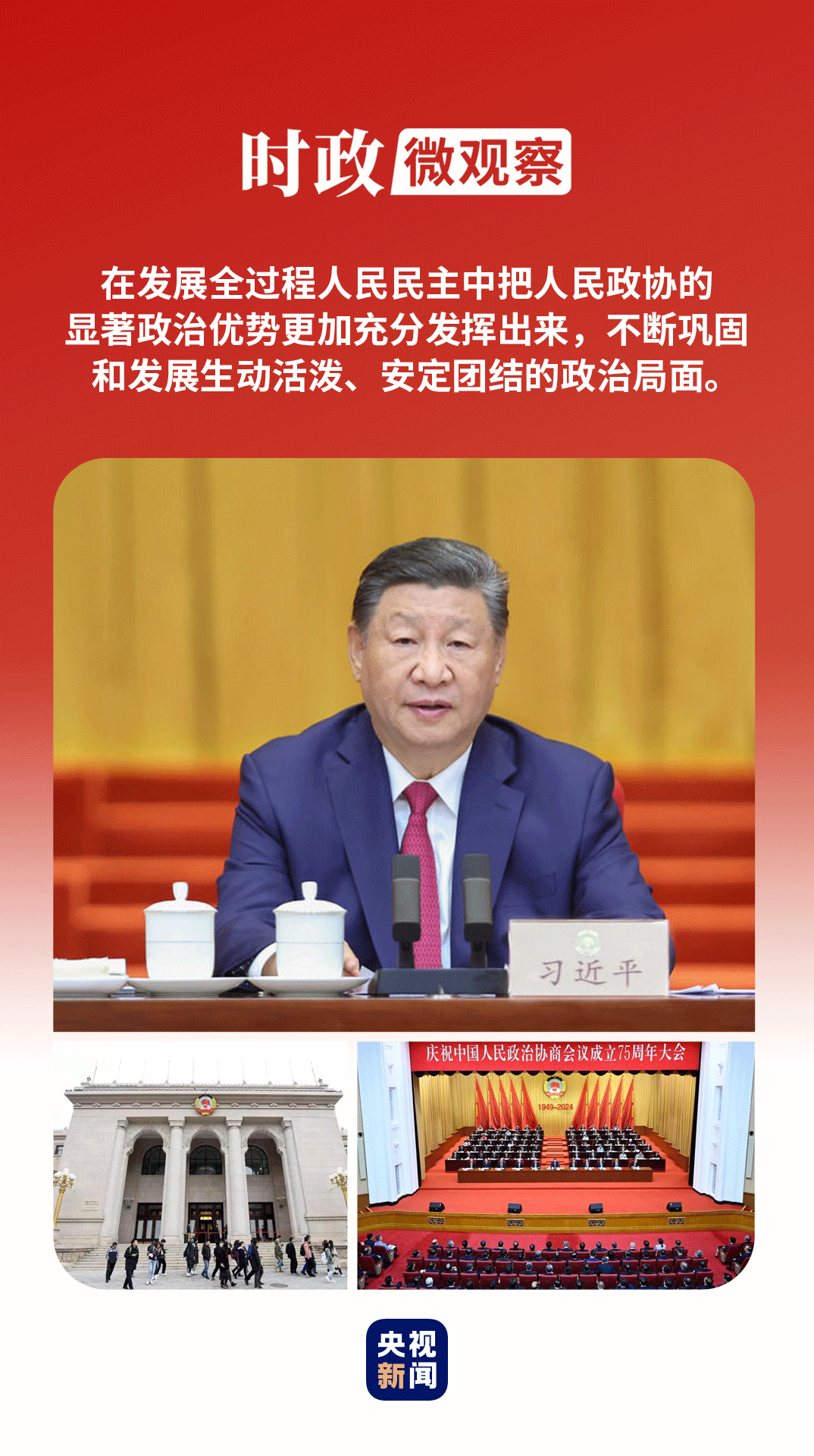 2024年9月20日,全國政協(xié)禮堂,中共中央、全國政協(xié)隆重舉行慶祝中國人民政治協(xié)商會議成立75周年大會。在大會上,習近平總書記高度評價人民政協(xié)的歷史貢獻,提出新時代人民政協(xié)“十個堅持”的原則,深刻闡述人民政協(xié)的鮮明中國特色和顯著政治優(yōu)勢,對不斷推進協(xié)商民主廣泛多層制度化發(fā)展提出明確要求,對做好當前和今后一個時期人民政協(xié)工作作出全面部署。