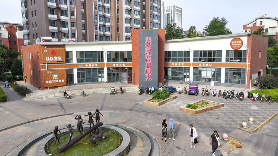 這是2024年6月20日拍攝的寧夏銀川市金鳳區(qū)長(zhǎng)城花園社區(qū)日間照料中心(無(wú)人機(jī)照片)。新華社記者 馮開(kāi)華 攝