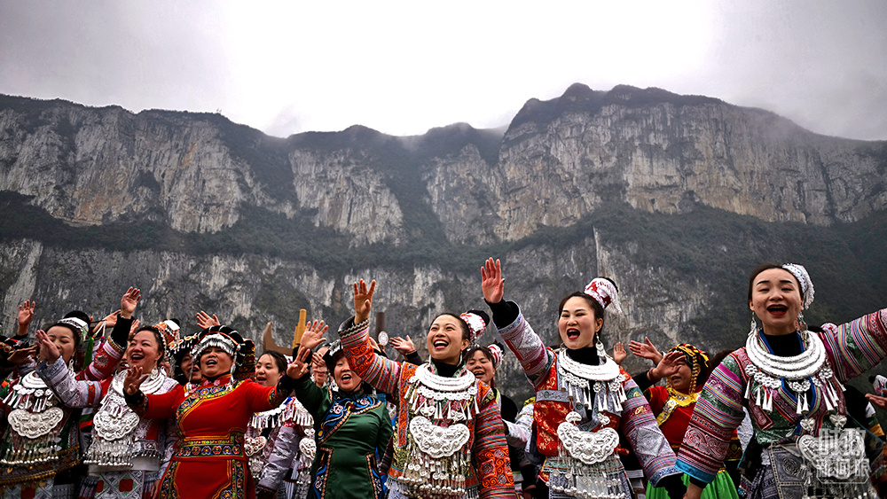 2021年2月,習(xí)近平總書記來到貴州化屋村考察,當(dāng)?shù)卮迕裼脷g快的苗家歌舞迎接總書記。(總臺(tái)央視記者王哈男拍攝)