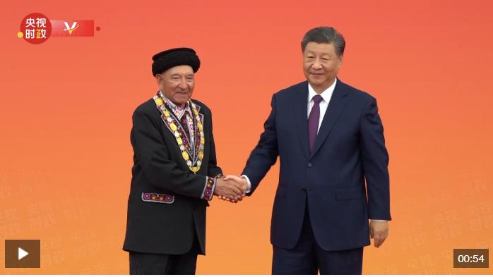 中華人民共和國國家勛章和國家榮譽(yù)稱號頒授儀式9月29日上午10時(shí)在人民大會堂隆重舉行。中共中央總書記、國家主席、中央軍委主席習(xí)近平向“人民衛(wèi)士”國家榮譽(yù)稱號獲得者巴依卡·凱力迪別克頒授獎(jiǎng)?wù)隆?/p>