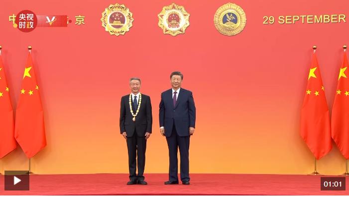中華人民共和國國家勛章和國家榮譽稱號頒授儀式9月29日上午10時在人民大會堂隆重舉行。中共中央總書記、國家主席、中央軍委主席習近平向“人民工匠”國家榮譽稱號獲得者許振超頒授獎章。