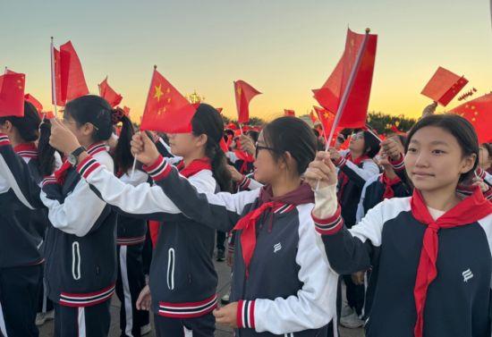 2024年10月1日,天安門廣場(chǎng)舉行升國旗儀式,慶祝中華人民共和國成立75周年。北京2000名大中小學(xué)師生現(xiàn)場(chǎng)觀禮升國旗儀式。