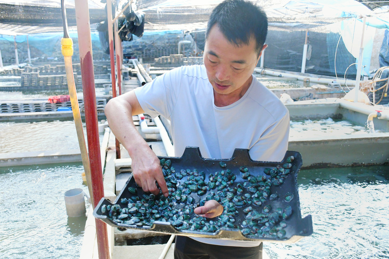走進福建東山縣陳城鎮(zhèn)澳角村鮑魚養(yǎng)殖戶郭漢棟的養(yǎng)殖場,新苗池與成品鮑魚苗池在兩側排開,養(yǎng)殖池智慧控制系統(tǒng)正在高效運轉。這些年,郭漢棟的鮑魚苗賣到了閩北、浙江等地,育苗收入穩(wěn)步增長。