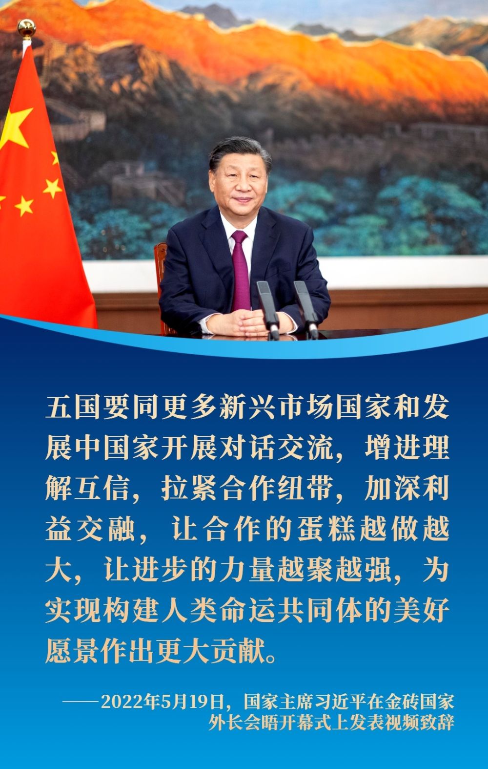 跨越山海,相互成就。中國將同金磚伙伴一道,秉持開放包容、合作共贏精神,堅守團結自強初心,繼續(xù)書寫攜手發(fā)展的精彩故事。