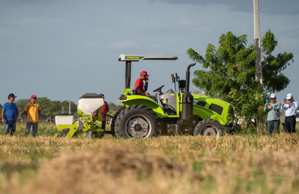 2024年2月2日,在巴西阿波迪的中巴農業(yè)機械化合作示范農場,一款中國生產的農機在田間示范作業(yè),吸引了人們觀看。中巴農業(yè)機械化合作示范農場旨在助力巴西農業(yè)生產,促進中小農戶減貧和鄉(xiāng)村振興。