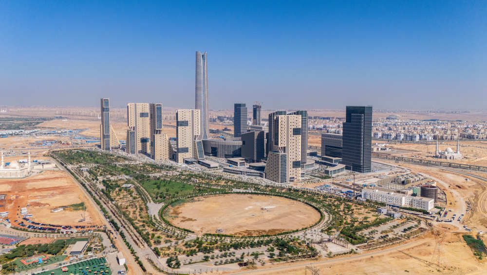 這是埃及新行政首都中央商務區(qū)(2024年8月31日攝,無人機照片)。埃及新行政首都中央商務區(qū)項目位于首都開羅以東約50公里,是埃及國家復興計劃的重要工程,也是中埃共建“一帶一路”的重點工程。新華社發(fā)(黎炳宏攝)