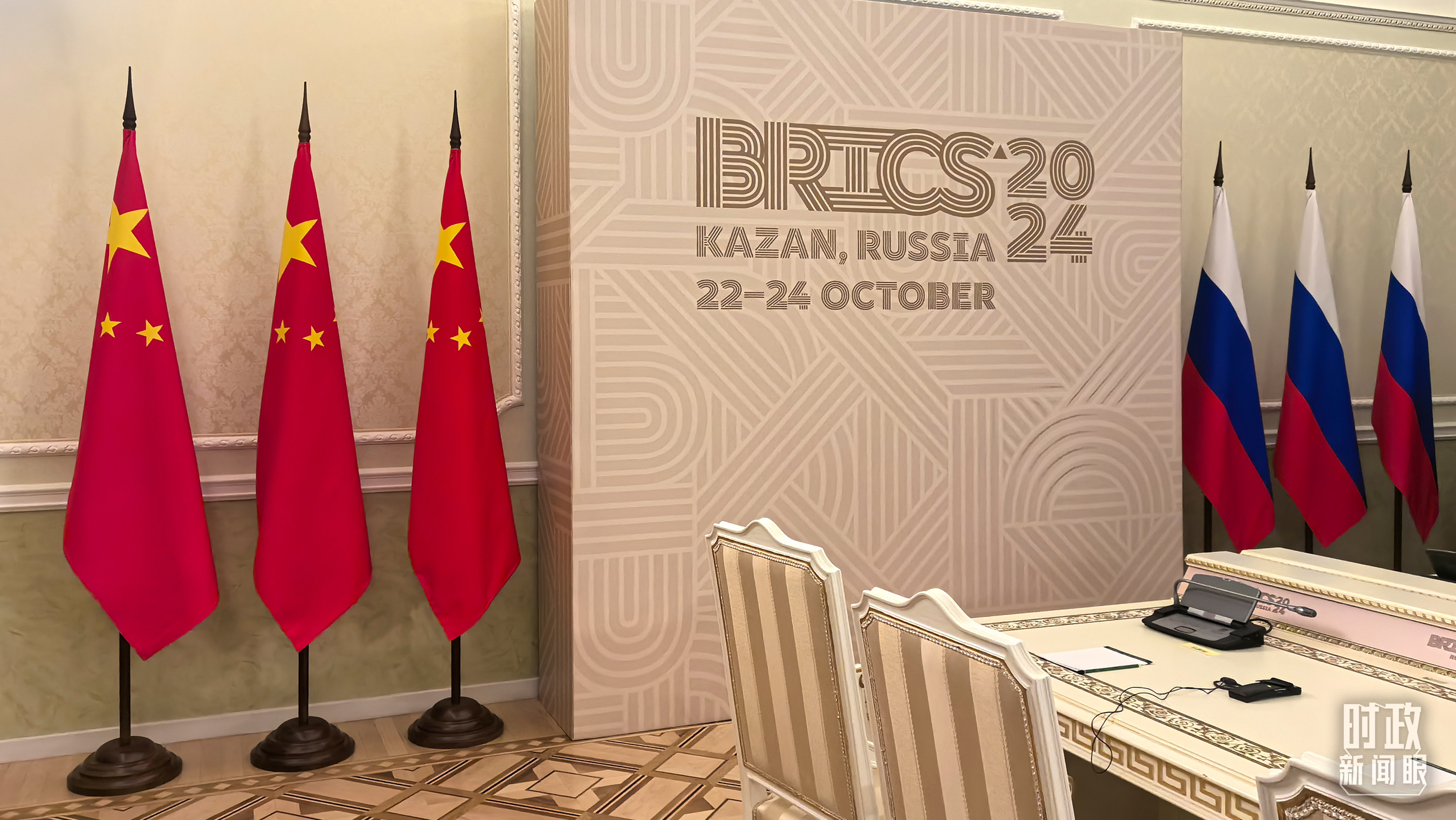 中俄兩國(guó)元首喀山會(huì)晤開始前的現(xiàn)場(chǎng)。(總臺(tái)央視記者程鋮拍攝)