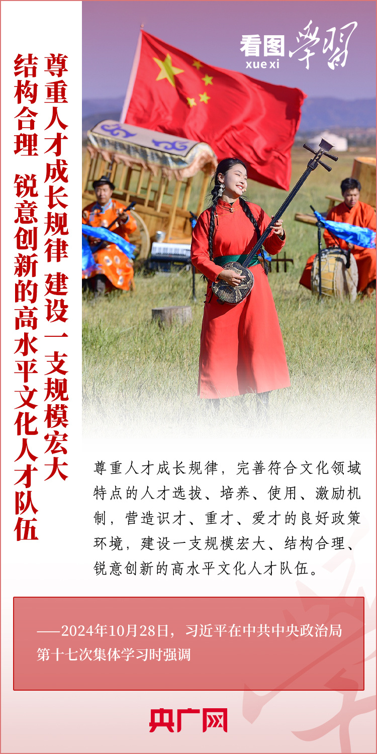 建設(shè)文化強國是全黨全社會的共同任務(wù)。10月28日,中共中央政治局就建設(shè)文化強國進(jìn)行第十七次集體學(xué)習(xí)。習(xí)近平總書記在聽取講解和討論后發(fā)表重要講話,就錨定2035年建成文化強國戰(zhàn)略目標(biāo)作出最新部署,強調(diào)要“不斷發(fā)展具有強大思想引領(lǐng)力、精神凝聚力、價值感召力、國際影響力的新時代中國特色社會主義文化,不斷增強人民精神力量,筑牢強國建設(shè)、民族復(fù)興的文化根基?!币黄饋韺W(xué)習(xí)!