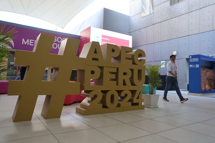 這是11月8日在秘魯利馬拍攝的2024年亞太經(jīng)濟(jì)合作組織(APEC)會(huì)議標(biāo)識(shí)。新華社記者 許睿 攝