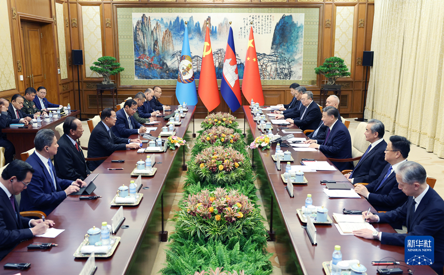 12月3日,中共中央總書記、國家主席習近平在北京釣魚臺國賓館同柬埔寨人民黨主席、參議院主席洪森舉行會談。新華社記者 謝環(huán)馳 攝