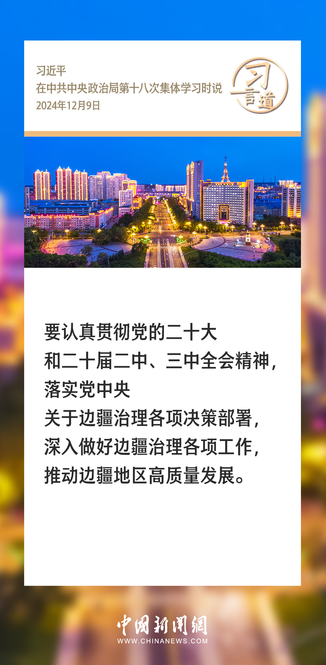 中共中央政治局12月9日就我國歷史上的邊疆治理進行第十八次集體學(xué)習(xí)。中共中央總書記習(xí)近平在主持學(xué)習(xí)時強調(diào)——