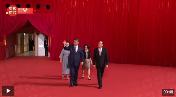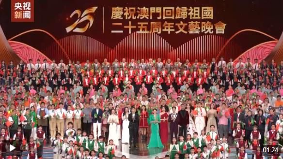 晚會最后,習(xí)近平同全場觀眾一起高唱《歌唱祖國》,祝愿偉大祖國繁榮富強(qiáng),祝福澳門明天更加美好。習(xí)近平向全體演員和觀眾揮手致意,晚會氣氛被推向高潮,歌聲和掌聲匯成歡樂的海洋。