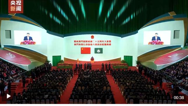 12月20日上午,慶祝澳門回歸祖國(guó)25周年大會(huì)暨澳門特別行政區(qū)第六屆政府就職典禮舉行。中共中央總書記、國(guó)家主席、中央軍委主席習(xí)近平出席并發(fā)表重要講話。