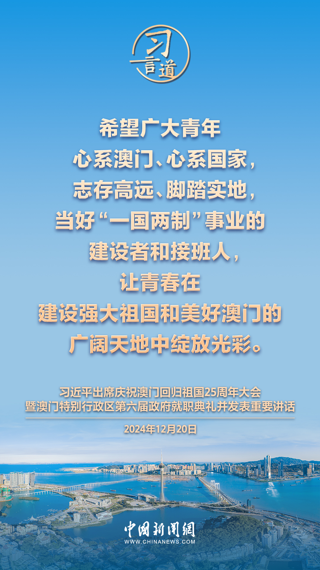 慶祝澳門回歸祖國25周年大會暨澳門特別行政區(qū)第六屆政府就職典禮20日在澳門東亞運動會體育館隆重舉行。中共中央總書記、國家主席、中央軍委主席習(xí)近平出席并發(fā)表重要講話,習(xí)近平指出——