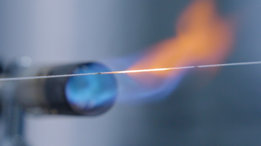“這根絲超級耐高溫,1200℃的火焰也燒不斷它。它比頭發(fā)絲還細,直徑只有7到12微米,卻能提起5公斤重物?!苯榻B,這根絲可以做成布、繩子、套管、織帶等,可應用于石油化工、能源電力、國防安全等多個領域。10年研發(fā)期間,工作人員做了無數(shù)次試驗,打了幾萬個樣品,才讓它硬核出圈,填補了國內高性能纖維材料的空白。