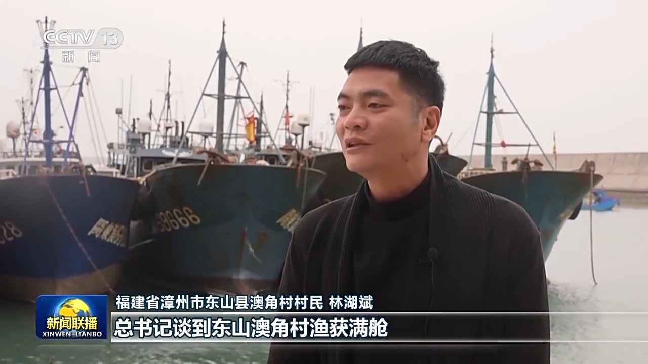 福建省漳州市東山縣澳角村村民 林湖斌:在新年賀詞中,總書記談到東山澳角村漁獲滿艙,讓我非常感動(dòng),也干勁十足。現(xiàn)在是年節(jié)期間,正是海產(chǎn)品的銷售旺季,訂單也是越來(lái)越多。我們要擼起袖子加油干,讓我們海洋漁業(yè)發(fā)展得更好,把我們澳角村建設(shè)得更美好。