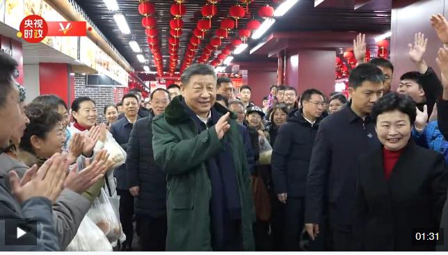 習(xí)近平總書記來到大東副食品商場,了解當(dāng)?shù)毓?jié)日期間市場供應(yīng)、群眾生活保障等情況。
