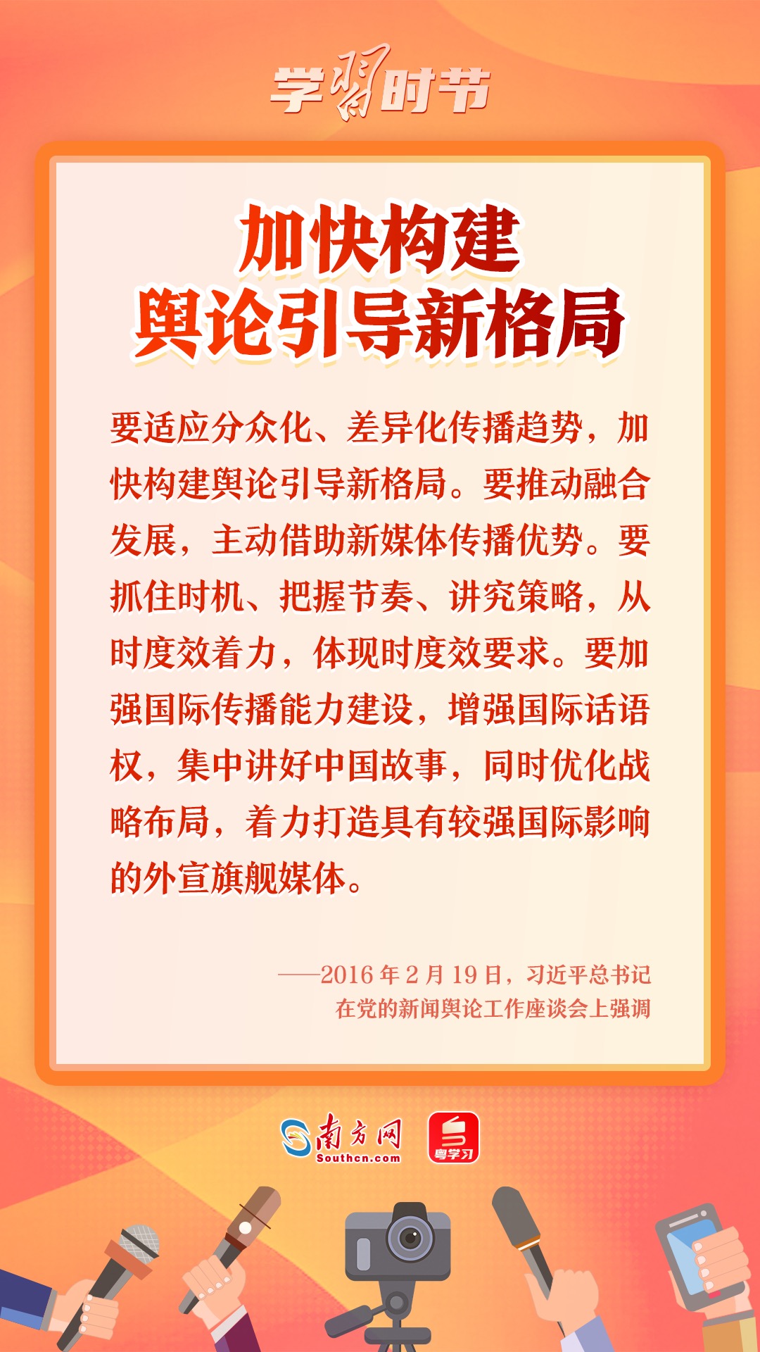 2016年2月19日,習近平總書記主持召開黨的新聞輿論工作座談會并發(fā)表重要講話。他強調,“黨的新聞輿論工作是黨的一項重要工作,是治國理政、定國安邦的大事”。