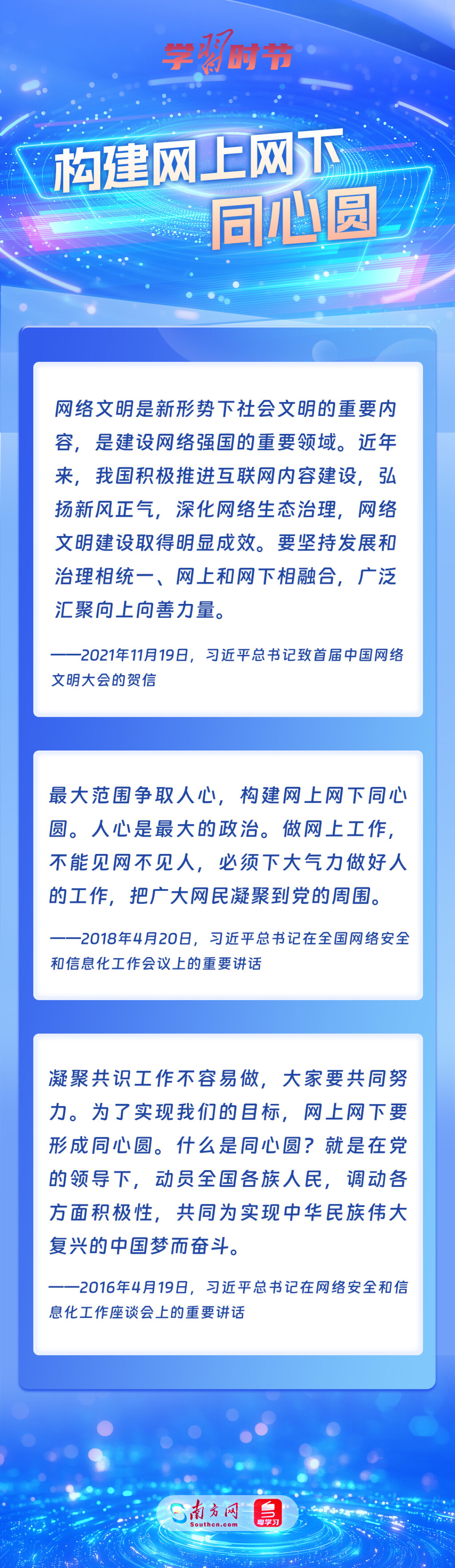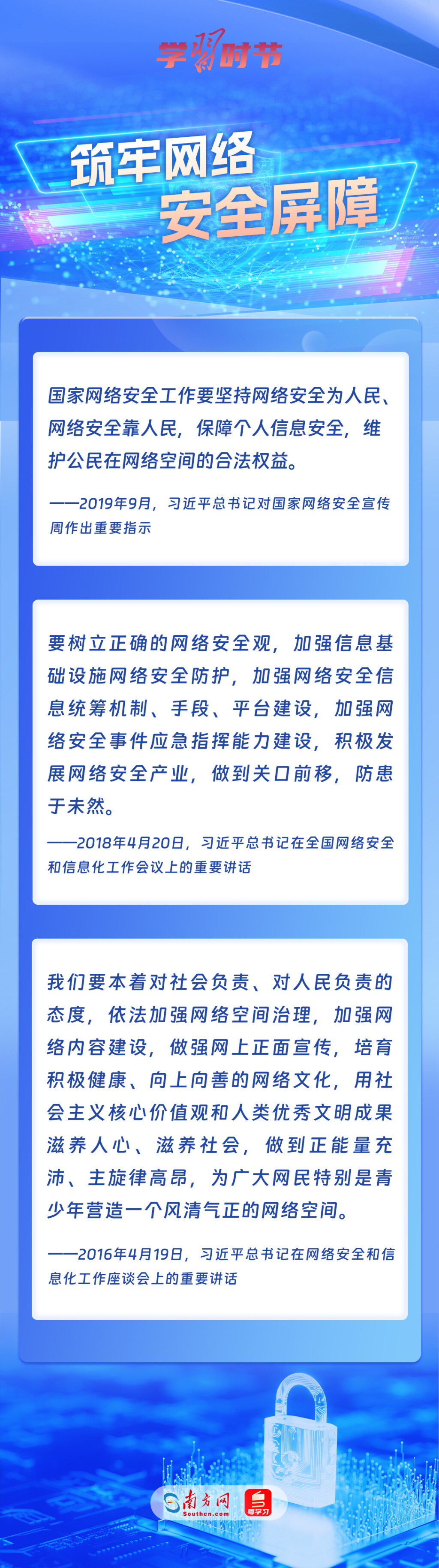 黨的十八大以來(lái),習(xí)近平總書(shū)記從信息化發(fā)展大勢(shì)和國(guó)內(nèi)國(guó)際大局出發(fā),就網(wǎng)絡(luò)安全和信息化工作提出一系列具有開(kāi)創(chuàng)性意義的新理念新思想新戰(zhàn)略,形成了習(xí)近平總書(shū)記關(guān)于網(wǎng)絡(luò)強(qiáng)國(guó)的重要思想。其中,有不少生動(dòng)形象的表述,深入人心,發(fā)人深省,讓我們一起學(xué)習(xí)。