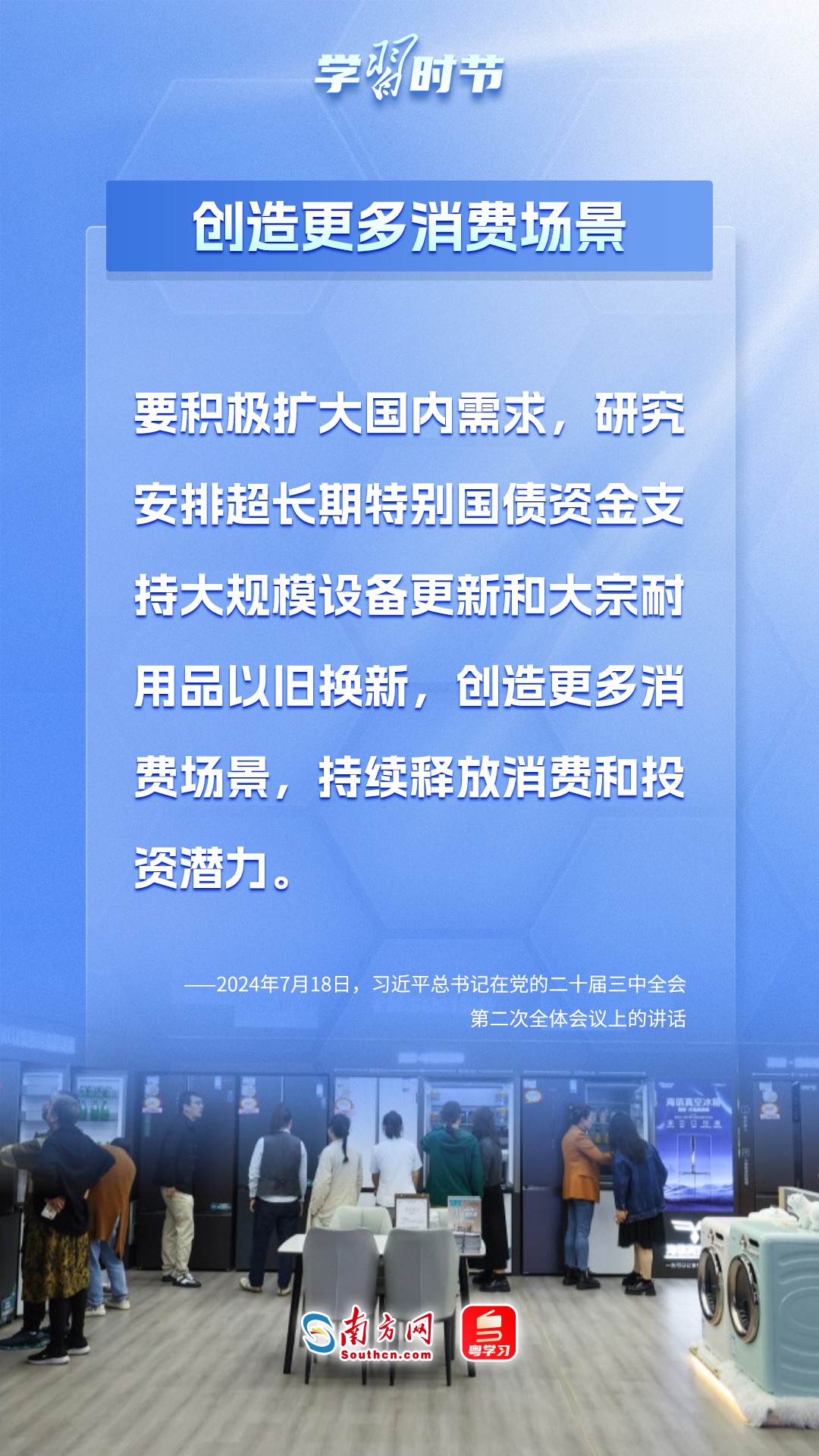 如何加快補(bǔ)上消費(fèi)短板?習(xí)近平總書(shū)記曾強(qiáng)調(diào):“要增強(qiáng)消費(fèi)能力,改善消費(fèi)條件,創(chuàng)新消費(fèi)場(chǎng)景,使消費(fèi)潛力充分釋放出來(lái)?!痹凇?·15”國(guó)際消費(fèi)者權(quán)益日到來(lái)之際,讓我們一同重溫習(xí)近平總書(shū)記近年來(lái)關(guān)于提振消費(fèi)的重要論述,共同創(chuàng)建讓居民能消費(fèi)、敢消費(fèi)、愿消費(fèi)的良好環(huán)境。