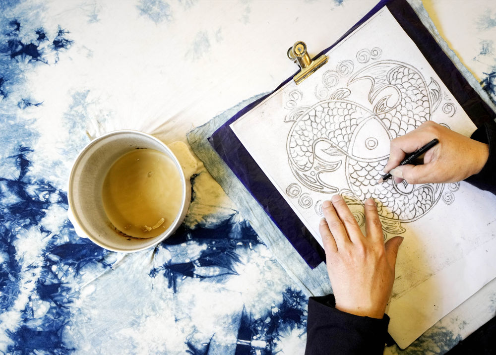2025年3月14日,村民在肇興侗寨內(nèi)制作蠟染。近年來,當(dāng)?shù)丶哟髮ι贁?shù)民族非遺文創(chuàng)產(chǎn)品的研發(fā)和創(chuàng)新力度,同時進(jìn)一步加強(qiáng)線上銷售,通過微信、網(wǎng)上直播、網(wǎng)店等方式進(jìn)行帶貨,讓當(dāng)?shù)厝罕娡ㄟ^指尖增收致富。
