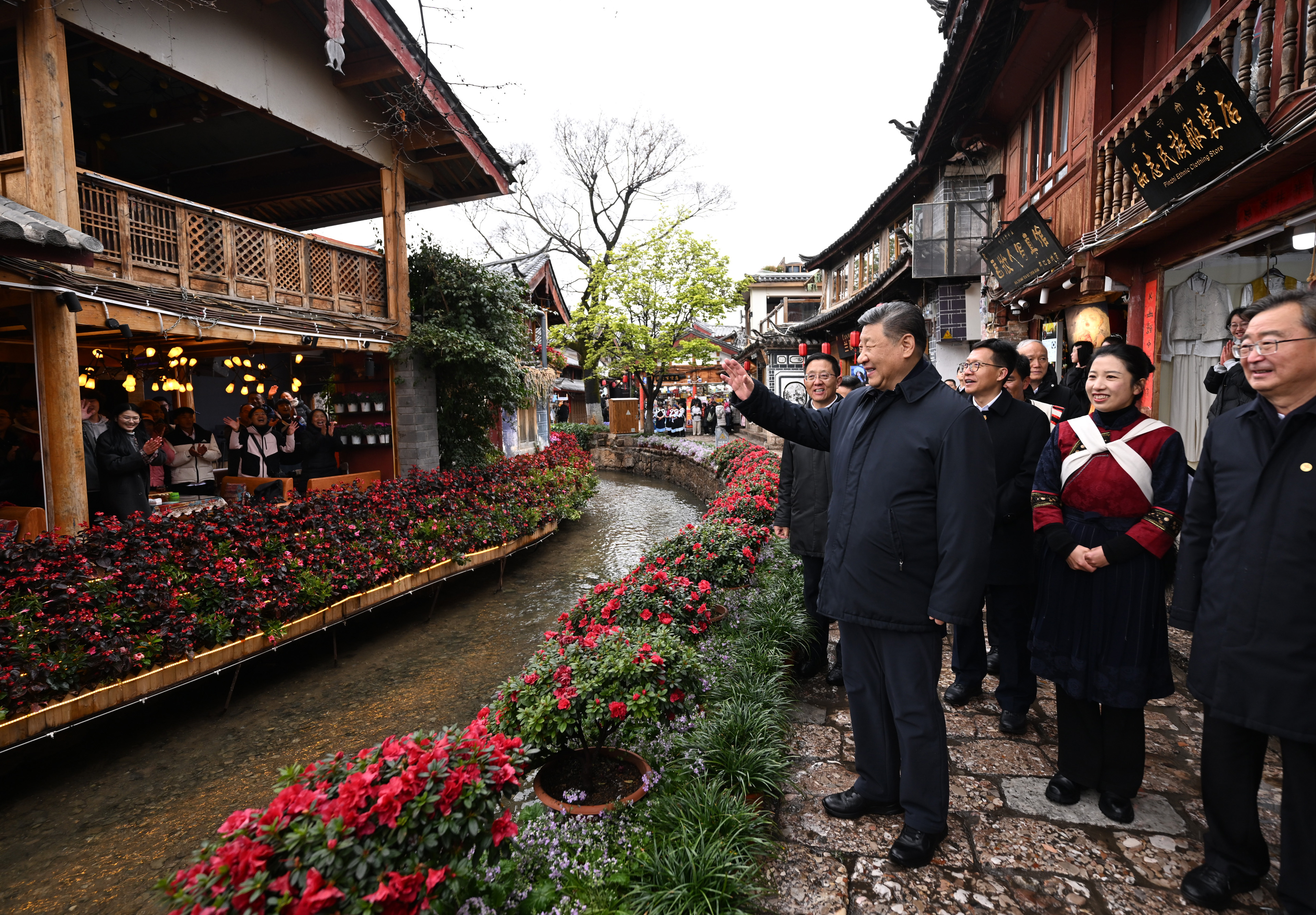 3月19日,習(xí)近平總書(shū)記考察麗江古城,詳細(xì)了解古城營(yíng)建歷史、納西族民居特色和當(dāng)?shù)匚幕z產(chǎn)保護(hù)利用、推動(dòng)文旅融合發(fā)展等情況。