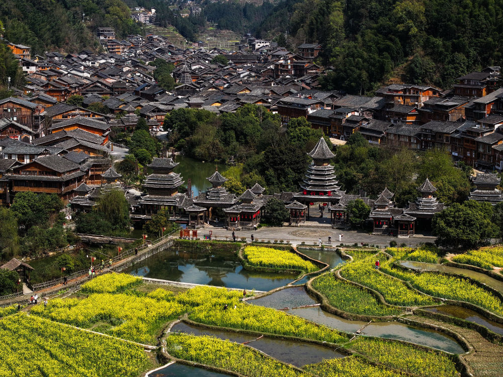 這是2025年3月18日拍攝的貴州省黎平縣肇興侗寨(無(wú)人機(jī)照片)。新華社記者 楊文斌 攝