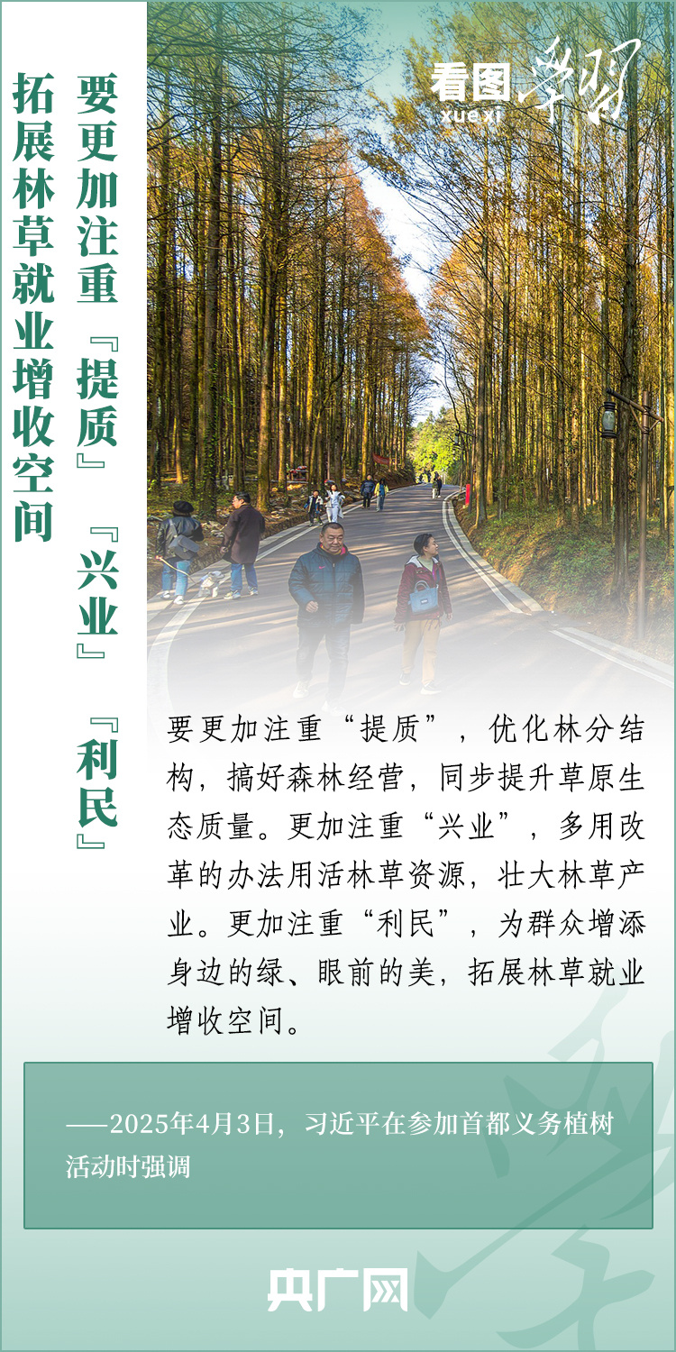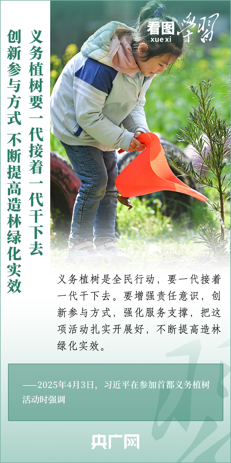 植樹造林是生態(tài)文明建設重要一環(huán)。4月3日,習近平總書記參加首都義務植樹活動。在植樹現(xiàn)場,總書記高度肯定國土綠化工作取得來之不易的成績,強調綠化祖國必須堅持“三綠”并舉、“四庫”聯(lián)動,要更加注重“提質”“興業(yè)”“利民”,“匯聚共建美麗中國的磅礴力量,讓祖國大地更加綠意盎然、生機勃發(fā)”。一起來學習!