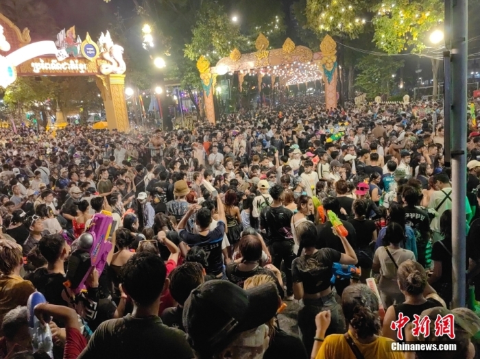 當?shù)貢r間4月14日晚,柬埔寨首都金邊市街頭人潮涌動。今年的柬埔寨新年時間為4月14日至16日,該國各大城市推出一系列頗具特色的文旅活動,以期進一步釋放節(jié)假經(jīng)濟潛力。中新社記者 楊強 攝