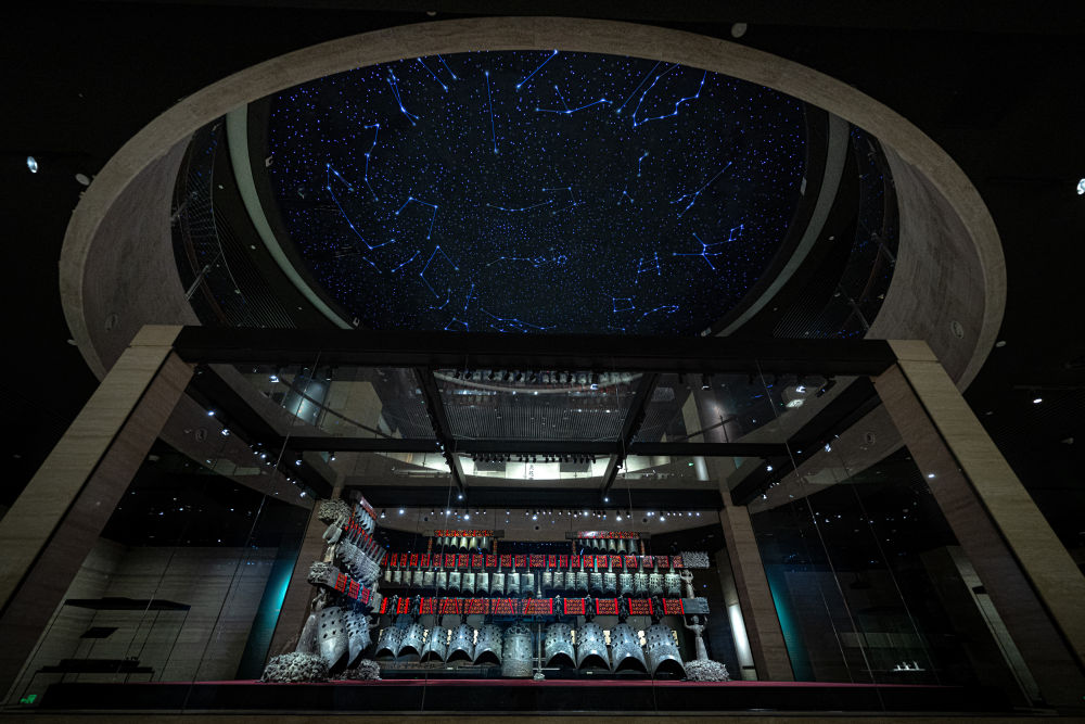 在湖北省博物館拍攝的隨州曾侯乙編鐘(2025年4月17日攝)。曾侯乙編鐘是我國出土數(shù)量最多、重量最重、音律最全、氣勢(shì)最為宏偉的一套編鐘,編鐘上的銘文是目前已知唯一的中國先秦官方音樂理論文獻(xiàn),以聲音和文字相互印證的方式保存了2400多年前人類的音樂記憶。