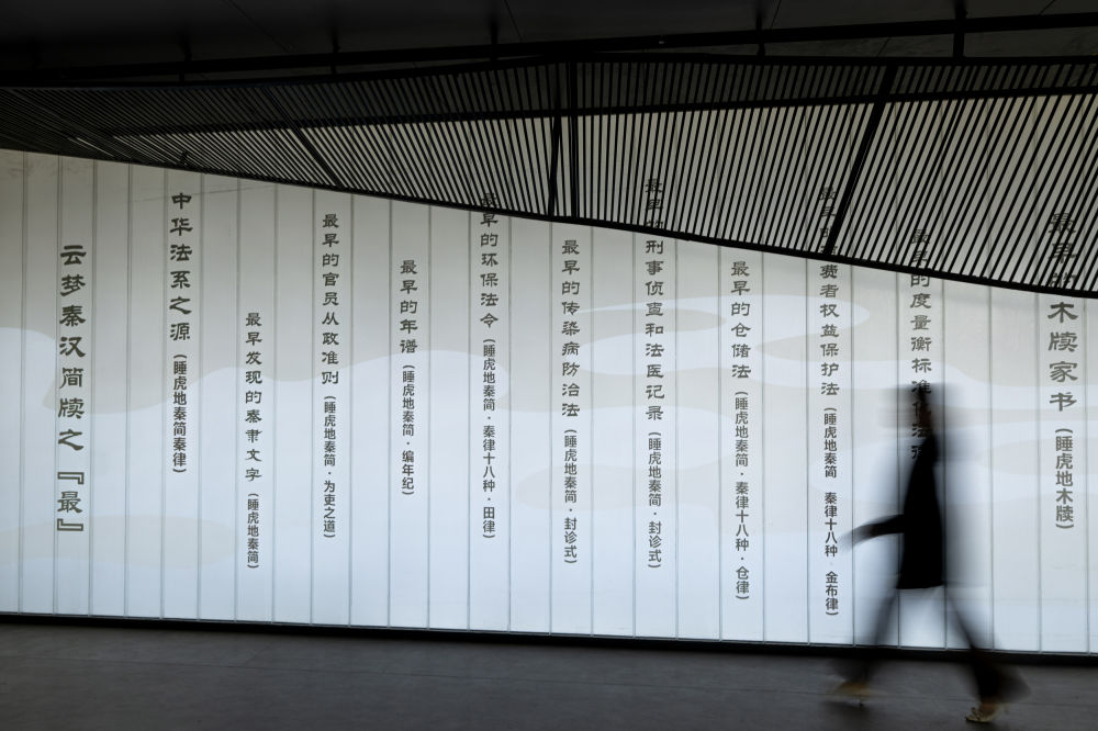 2024年4月15日,觀眾在湖北云夢(mèng)縣博物館睡虎地秦簡展廳參觀。睡虎地秦簡被發(fā)現(xiàn)于1975年,是中國考古史上首次發(fā)現(xiàn)的秦簡。