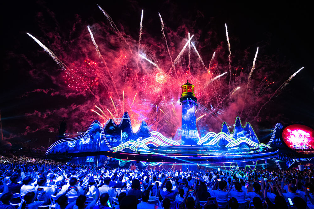 2023年9月16日,第十四屆中國長江三峽國際旅游節(jié)在湖北宜昌市燈塔廣場開幕,這是觀眾在開幕式現(xiàn)場觀看表演。生態(tài)搭臺(tái)、文旅唱戲,長江三峽國際旅游節(jié)是近些年三峽庫區(qū)把綠水青山轉(zhuǎn)變成“金山銀山”的生動(dòng)寫照。