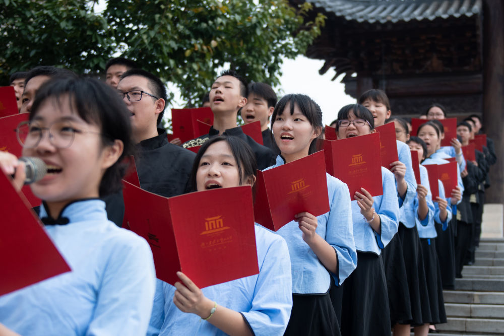 2023年9月4日,武漢市武昌區(qū)2023年秋季開學(xué)思政課在湖北省武昌實(shí)驗(yàn)中學(xué)開講,這是學(xué)生在誦讀《惟楚有材賦》。這堂思政課以“傳承武昌古城千年文脈,爭做守正創(chuàng)新時(shí)代新人”為主題,通過“實(shí)景體驗(yàn)+課堂展示”的形式,講述武昌古城1800年文脈的歷史與傳承,為該校學(xué)生帶來一場沉浸式課堂體驗(yàn)。