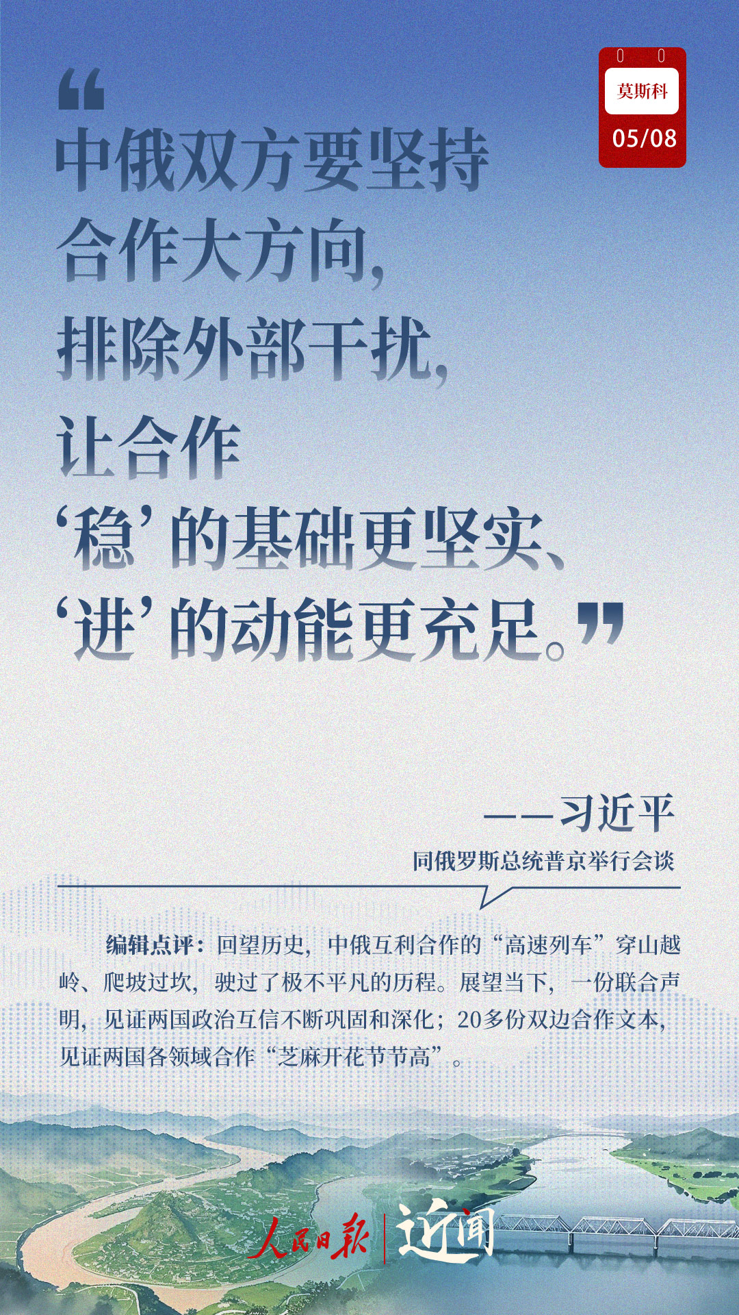 當?shù)貢r間5月8日,習近平主席出席普京總統(tǒng)舉行的歡迎儀式、小范圍會談、大范圍會談、簽字和合作文本交換儀式、共見記者、茶敘,兩國元首不同形式的長時間交流,引領中俄關系登高望遠。