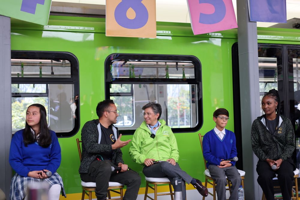 2023年8月10日,哥倫比亞波哥大市長(zhǎng)克勞迪婭·洛佩斯(中)在波哥大地鐵的模型車(chē)廂旁跟參加活動(dòng)的師生交流。按照計(jì)劃,由中企承建和運(yùn)營(yíng)的波哥大地鐵一號(hào)線(xiàn)將在2028年正式投入運(yùn)營(yíng)。