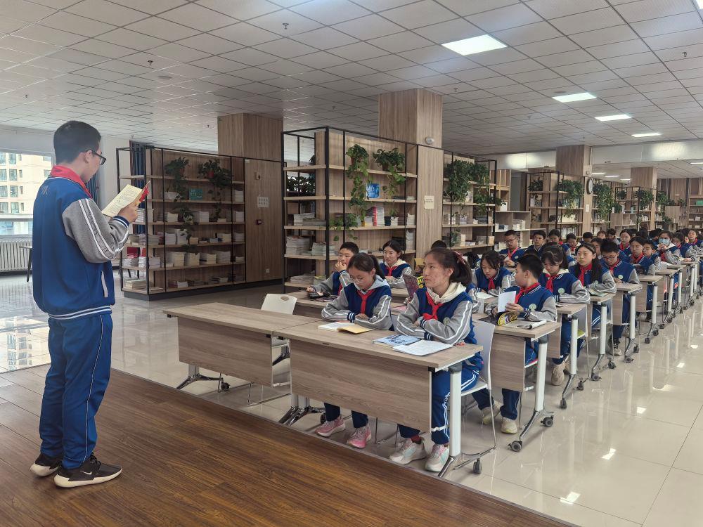 2025年4月16日,甘肅蘭州,學生們在圖書館上閱讀課。