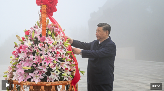 習近平在陽泉市向抗戰(zhàn)烈士敬獻花籃并參觀百團大戰(zhàn)紀念館